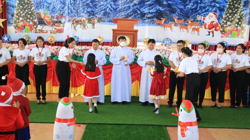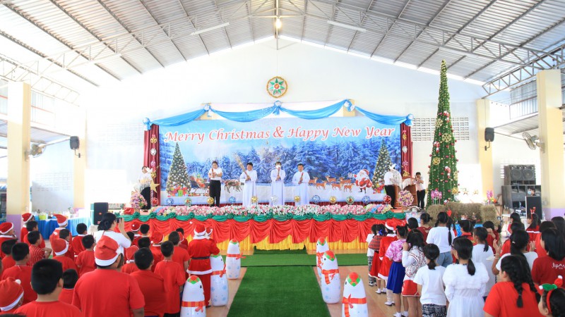 บาทหลวงทวีชัย ศรีวรกุล อุปสังฆราช เป็นประธานในพิธีบูชาขอบพระคุณ เนื่องในโอกาสวันคริสต์มาสและปีใหม่ ร่วมกับ บาทหลวงชัยวิชิต บรรเทา และบาทหลวงวิโรจน์ โพธิ์สว่าง เพื่อขอพรพระกุมาร โปรดอวยพระพรมายัง คณะผู้บริหาร ครู ผู้ปกครอง และนักเรียน ณ อาคารอเนกประสงค์ โรงเรียนเซนต์ยอแซฟนิคมน้ำอูน