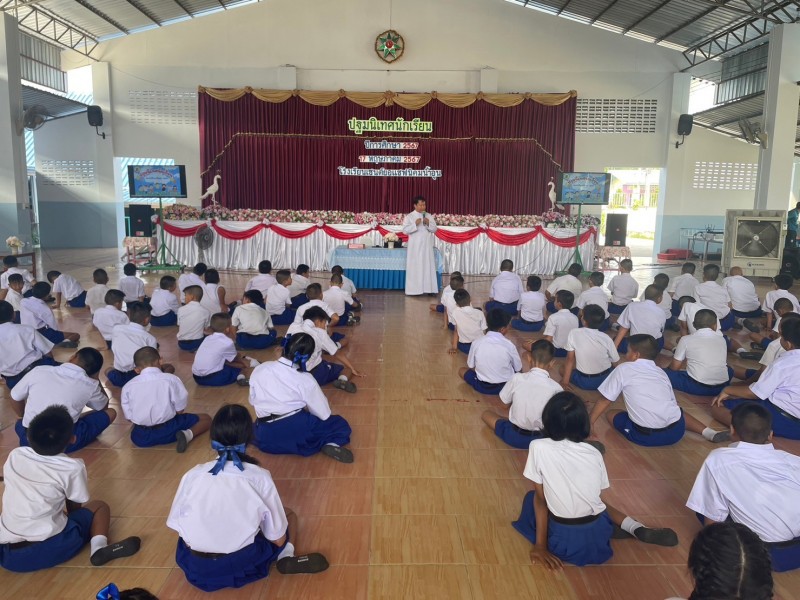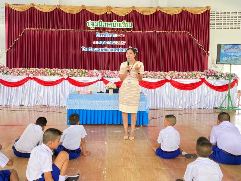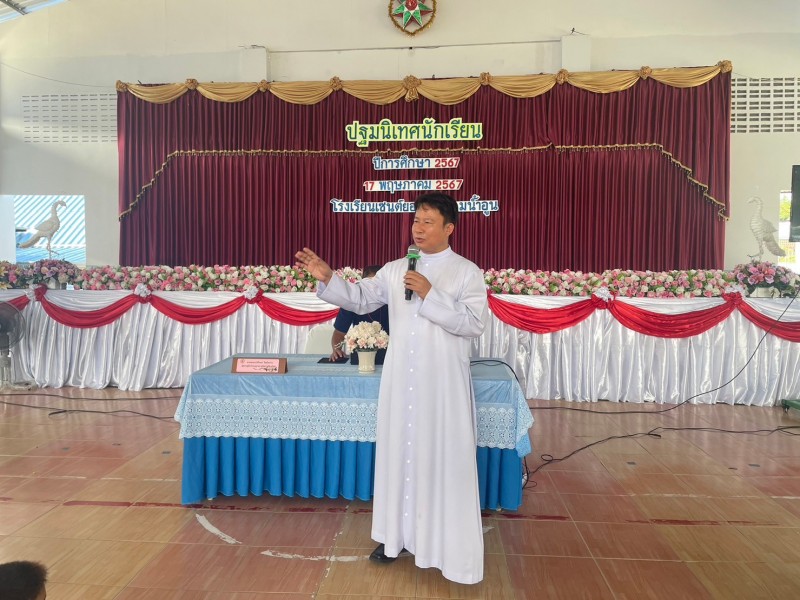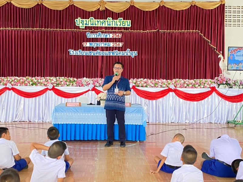 บาทหลวงวิโรจน์ โพธิ์สว่าง ผู้จัดการโรงเรียน ได้ปฐมนิเทศนักเรียน ประจำปีการศึกษา 2567 พร้อมกับผู้อำนวยการและหัวหน้าฝ่าย เพื่อเป็นการแนะนำนักเรียนได้ทราบถึงกฎระเบียบวินัย แนวทางปฏิบัติของโรงเรียน ตลอดจนการปฏิบัติตัวของนักเรียนที่ต้องเข้ามาเรียนในโรงเรียน ณ หอประชุมโรงเรียนเซนต์ยอแซฟนิคมน้ำอูน