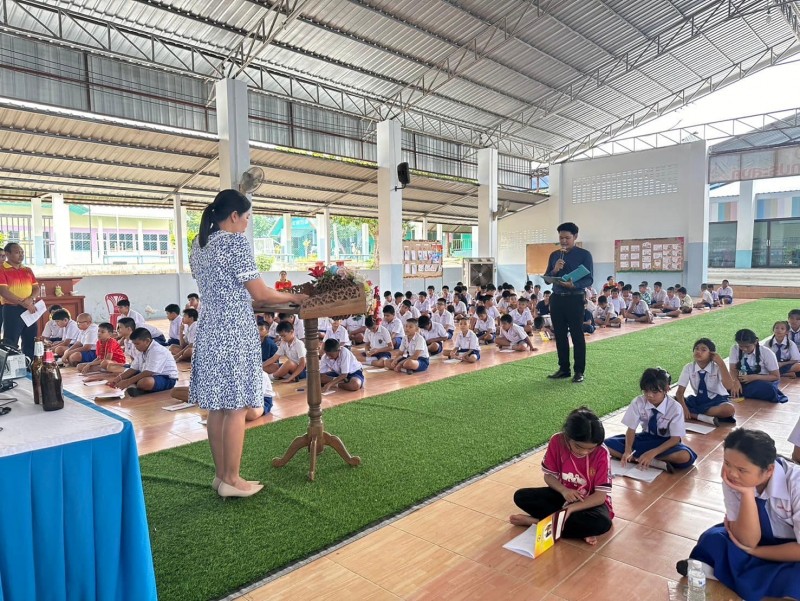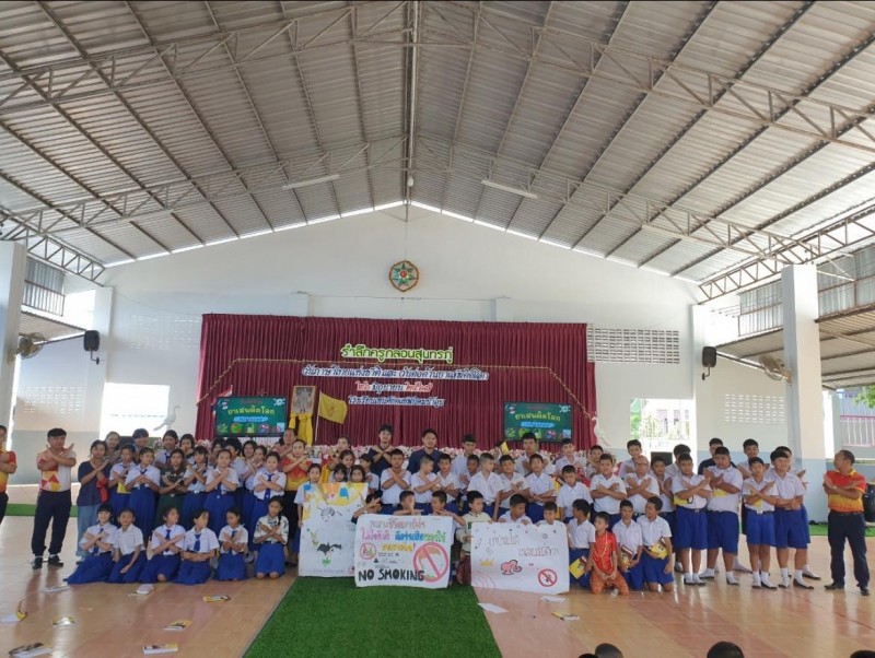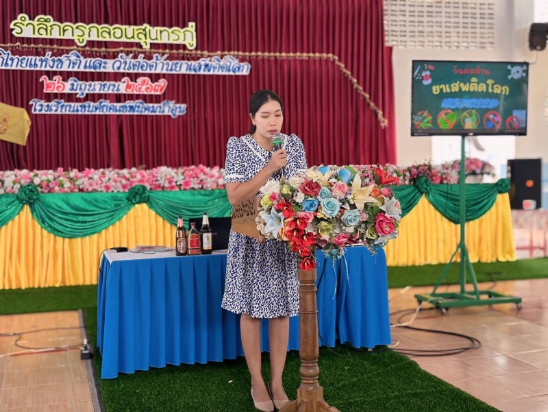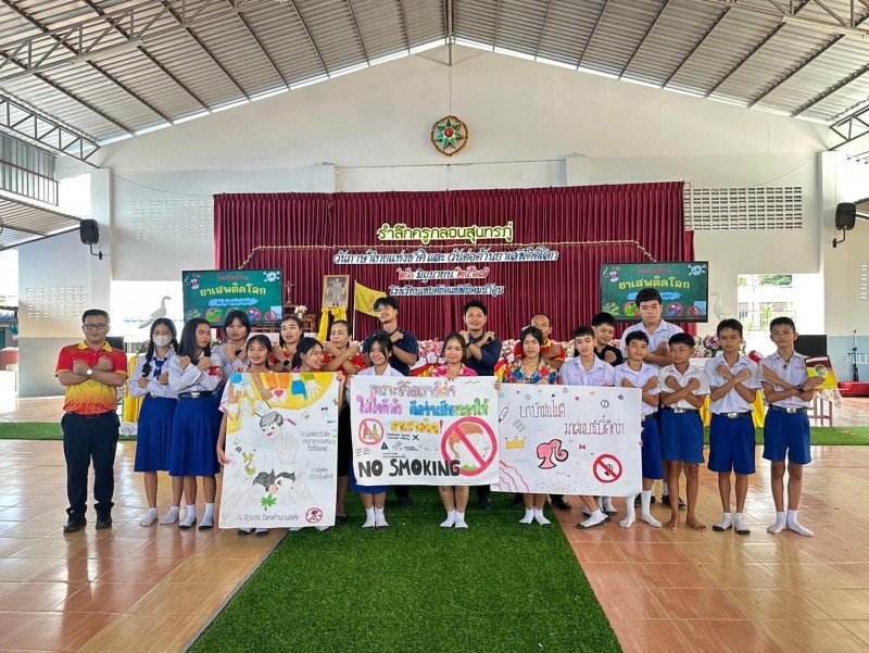 และนายไตรรงค์ ผิวดำ หัวหน้ากลุ่มสาระสุขศึกษาพลศึกษา และคณะครู นักเรียนได้ร่วมกิจกรรมกล่าวคำปฏิญาณตนประกาศเจตนารมณ์ต่อต้านยาเสพติด และอบรมให้ความรู้กับนักเรียนเรื่องโทษของยาเสพติด เนื่องในวันต่อต้่นยาเสพติดโลก